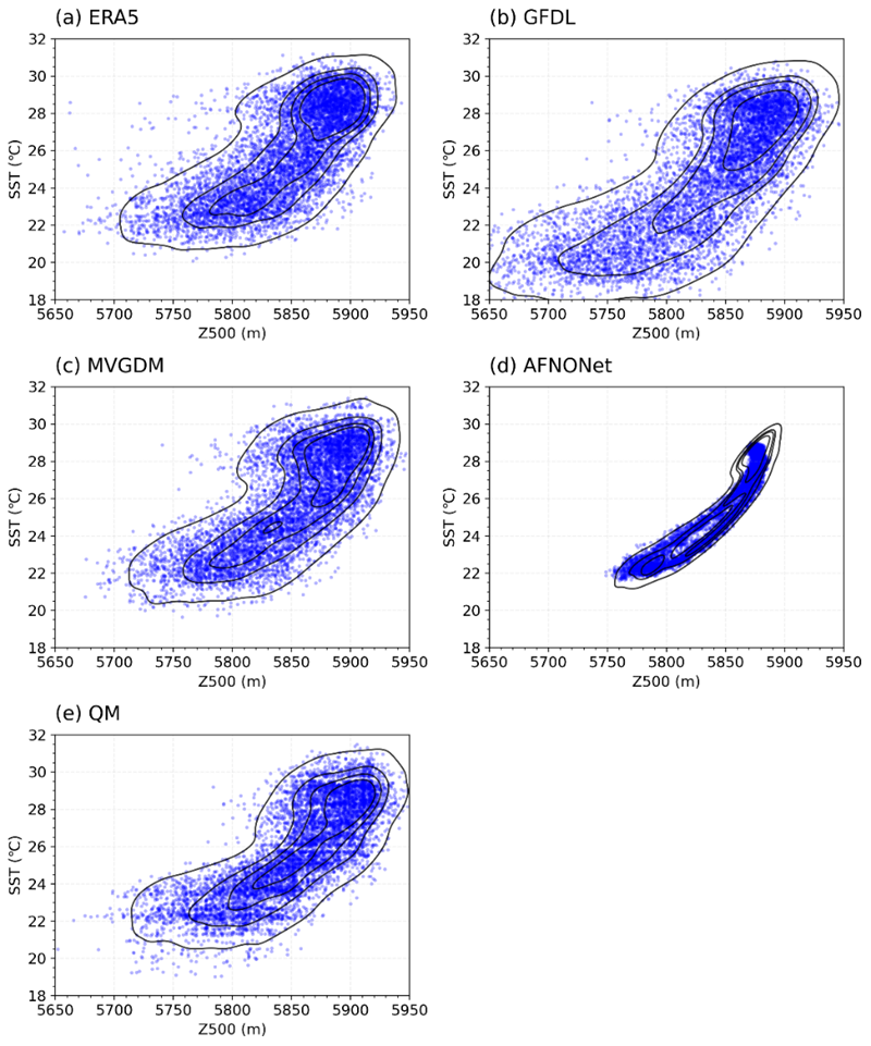 图2. 不同模型(GFDL、MVGDM、AFNONet、QM)对于联合分布依赖结构的模拟能力